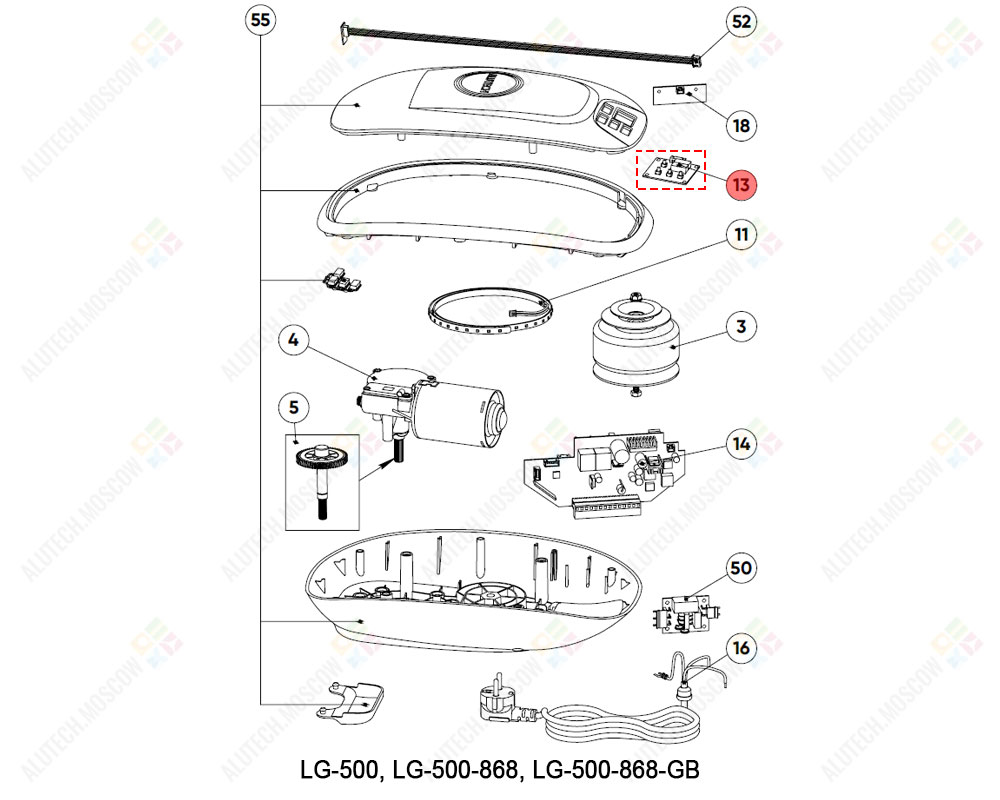 Плата управления LG.13S-H, подходит для автоматики ALUTECH моделей: LG-500, LG-500-868, LG-500-868-GB.