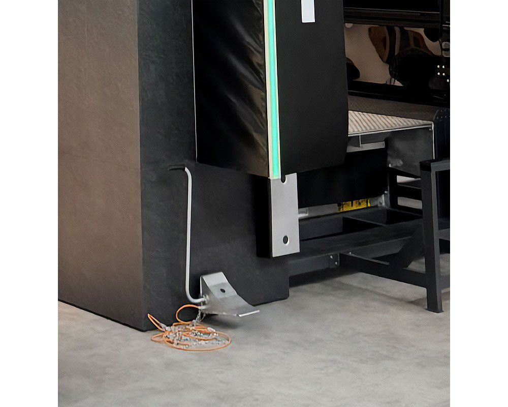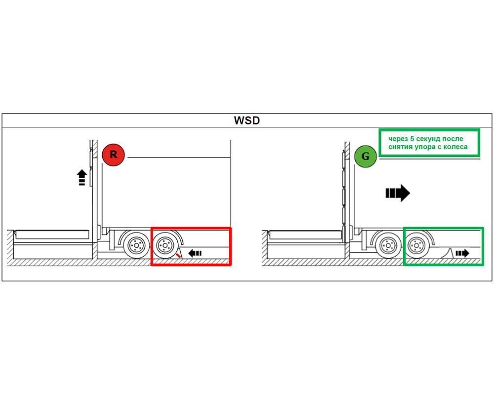 Встроенный инфракрасный датчик отслеживает положение колеса фуры и, если упор не установлен под ним, блокирует управление уравнительной платформой.