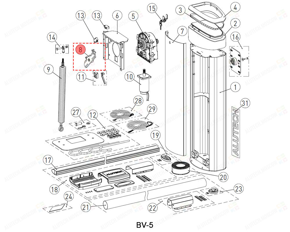 Рычаг BV-5.08, подходит для автоматики ALUTECH модели: BV-5.