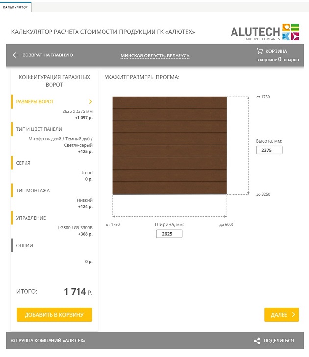 Теперь выбор ворот и роллет станет более наглядным. Дизайнеры «АЛЮТЕХ» добавили в калькулятор возможность просмотра не только миниатюр цветов и рисунков панелей, но и готовой продукции.